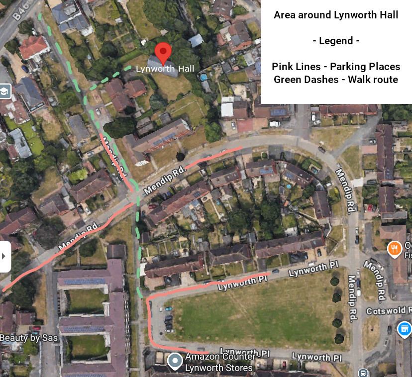Parking is available for a small number of vehicles in the access road to Hannah Boote House - which is the road leading up to Lynworth Hall.